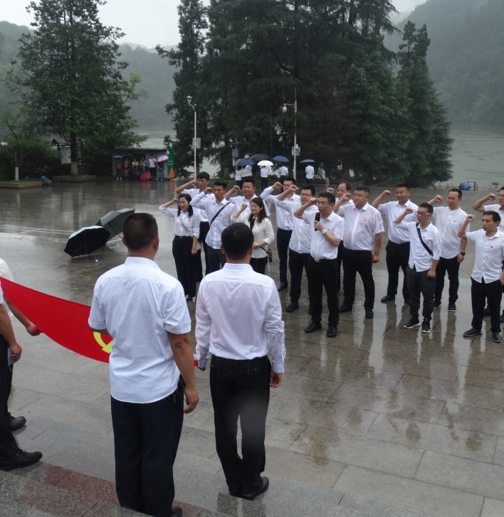 在庄严的纪念碑的见证下,面对鲜红的党旗,罗书记带领全体党员重温入党誓词。浇打在身上的雨水仿佛洗涤着我们的灵魂,更加点燃了我们爱党爱国的激情。庄严而坚定的宣誓声音表达了中部业务区坚定理想信念、矢志奋斗拼搏的信心和决心。