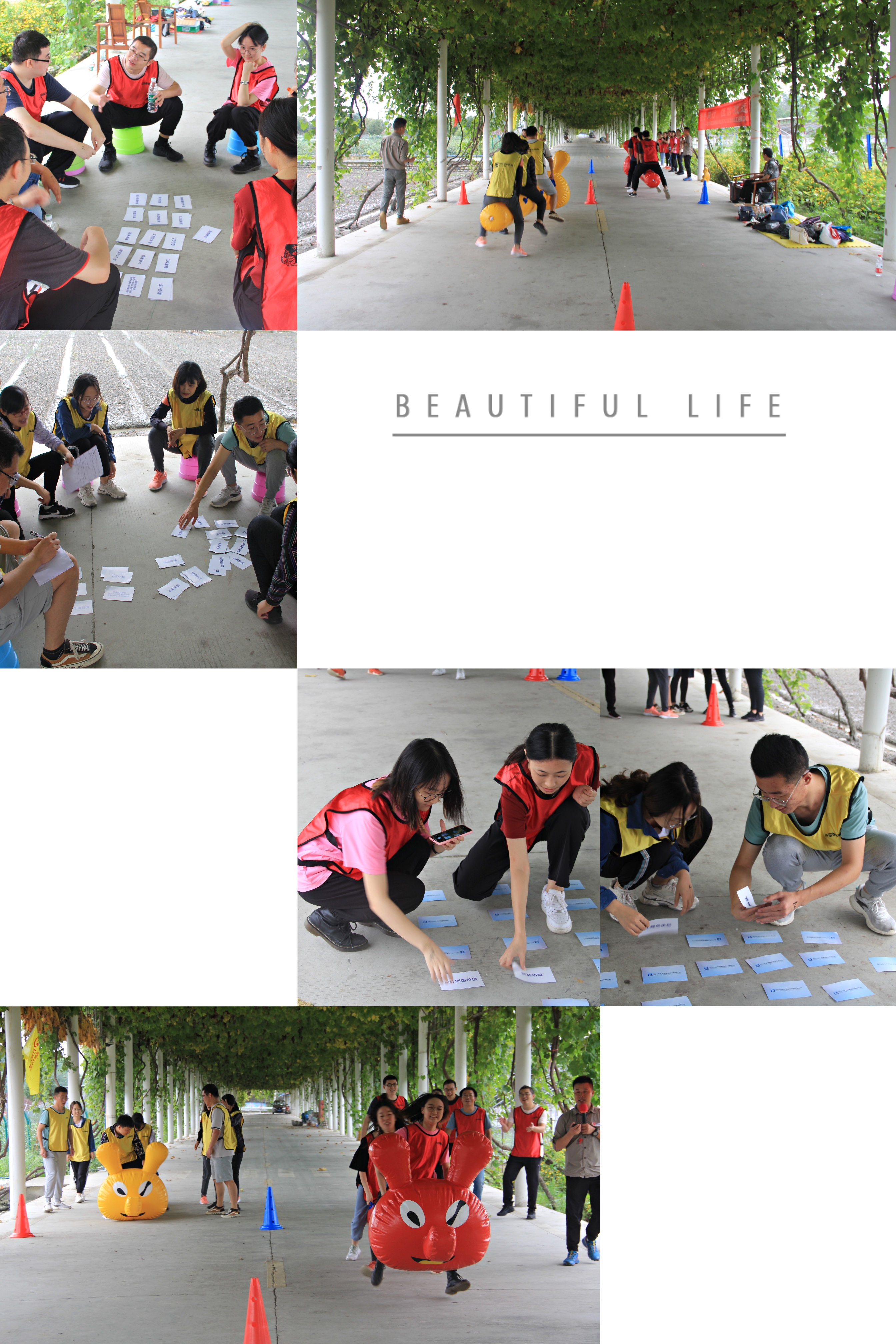 “快乐毛毛虫”项目由两队分三组进行接力比拼,最先抵达终点的团队获胜。在活动中考验的是如何根据团队自身的条件进行资源整合,制定好的计划策略及成员间的相互协作。最终火箭队以绝对优势取得了胜利。