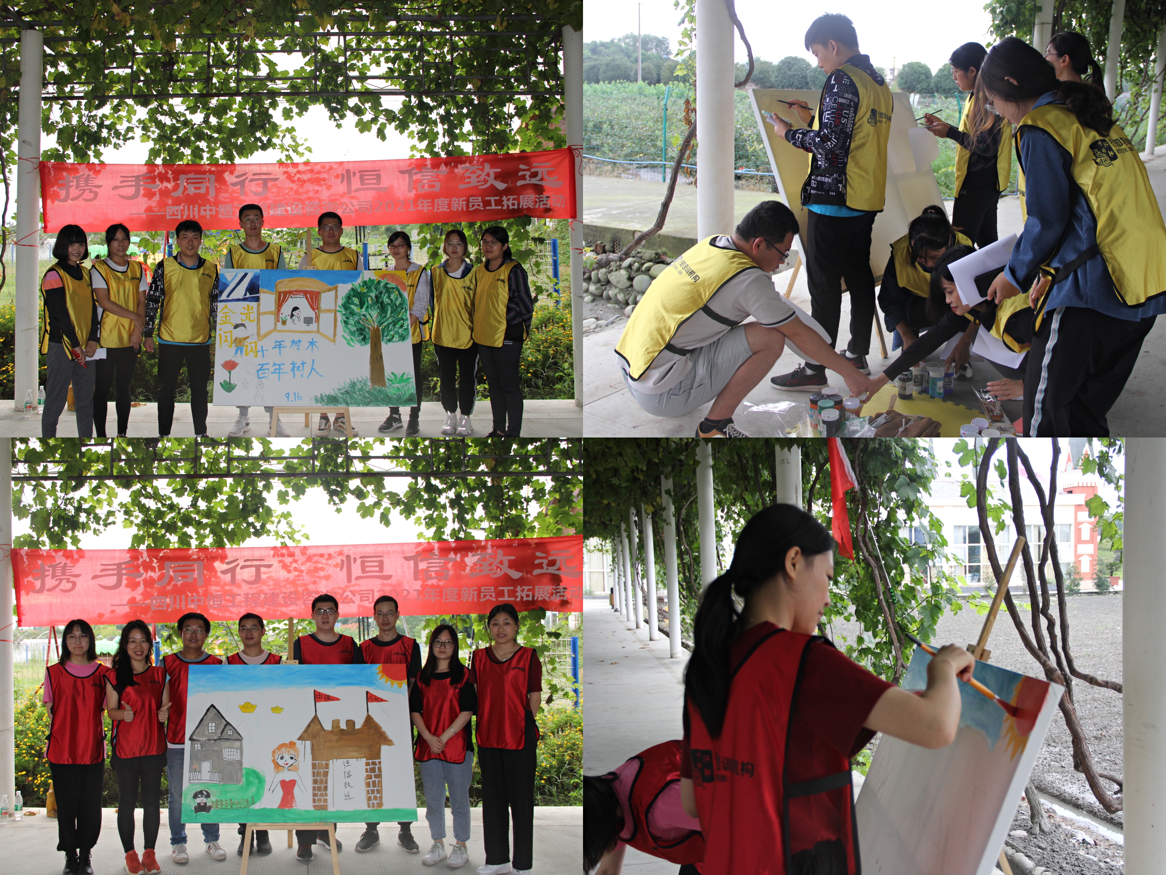 最后一个项目是共绘蓝图,大家一同畅想公司和个人的未来,大家都希望公司未来发展越来越好,成为行业NO.1,成为百年老店;希望个人在公司发展的同时也能获得良好的发展,事业发展和快乐生活两不误;并用画笔呈现在画布上,有的画画,有的配色,有的涂色......大家分工合作共绘美好愿景。