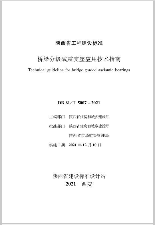 由中设计参编的陕西省工程建设地方标准《桥梁分级减震支座应用技术指南》正式发布。