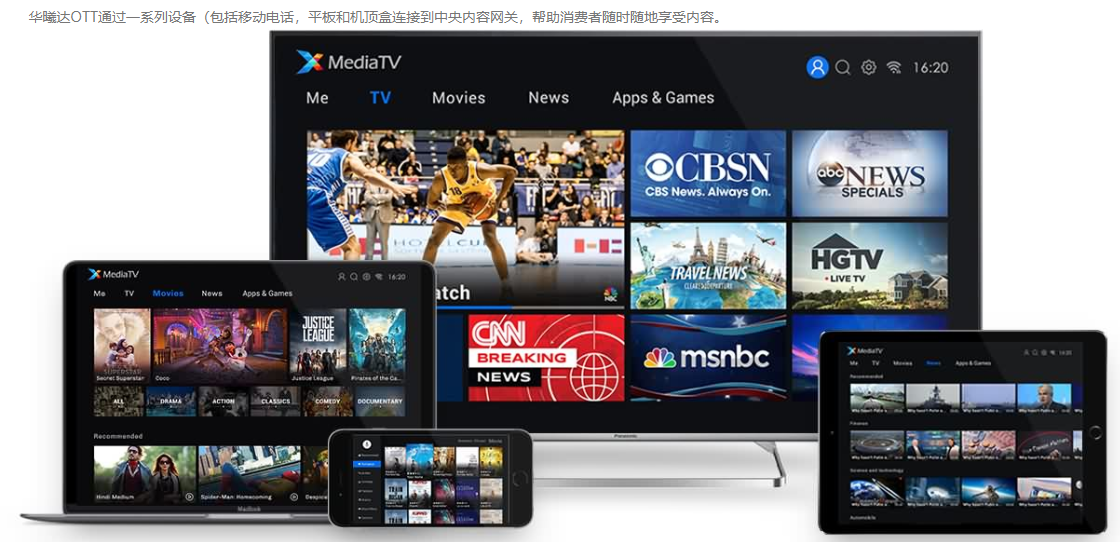 公司坚持“平台+智能终端+云服务”的发展战略,致力于智慧家庭Smart Home和数字媒体Digital Media领域的以数字媒体技术、云计算、AI人工智能、大数据技术为核心的软硬件产品 研发,为国内外通信运营商、广电运营商、电视台和媒体、以及行业客户提供领先的智慧产业整体解决方案和数字媒体云服务。公司核心产品包括:智慧产业云服务平台华曦达云、数字媒体云服务平台达视云DSCloud、OTT互联网视频云服务SaaS软件平台XMediaTV、Google和Netflix授权Android TV智能终端产品,以及下一代Wi-Fi 6E网络通讯产品。