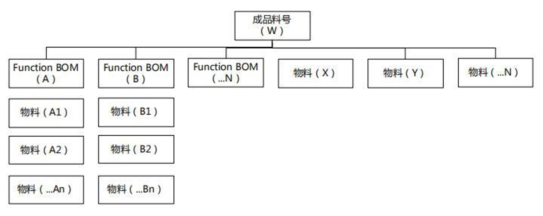 目前,BOM的组建大部分依靠一线工程师依据自身的设计/工艺方案及相关部门所提供的发布依据,在产品开发的各个阶段将BOM组建并发布为对应状态。各状态BOM发布均有对应的流程规范制约。各Function BOM被相关业务工程师组建并发布完成后将关联至项目的完成品料号,并由项目经理或专职工程师对成品料号下组建的各Function BOM的规范性及物料关系进行审核后,最终统一发布成品物料号(图1)。