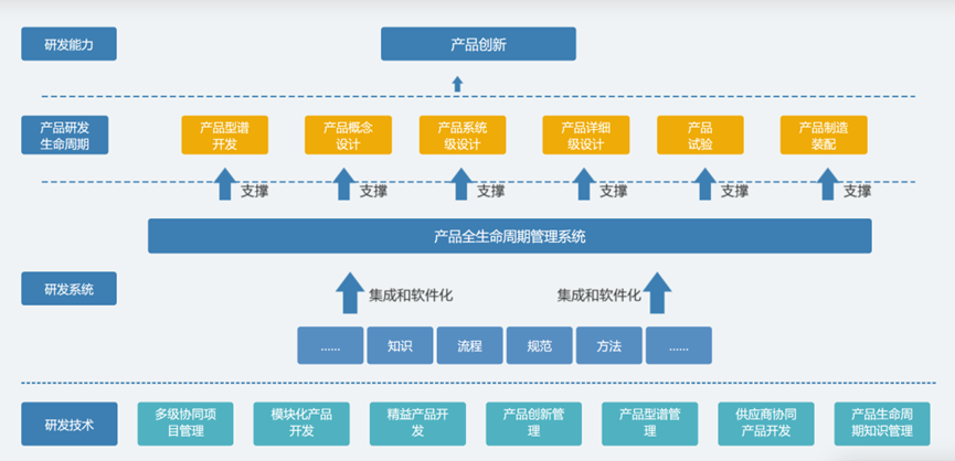 产品生命周期管理PLM自提出以来,便迅速成为制造业关注的焦点。PLM结合电子商务技术与协同技术,将产品开发流程与SCM、CRM、ERP等系统进行集成,将孤岛式流程管理转变成集成化的一体管理,实现从概念设计、产品设计、产品生产、产品维护到管理信息的全面数字化;实现企业知识价值的提升与知识共享管理,产品开发与业务流程的优化,从而全面提升企业生产效率,降低产品生命周期管理的成本,以提升企业的市场竞争力。