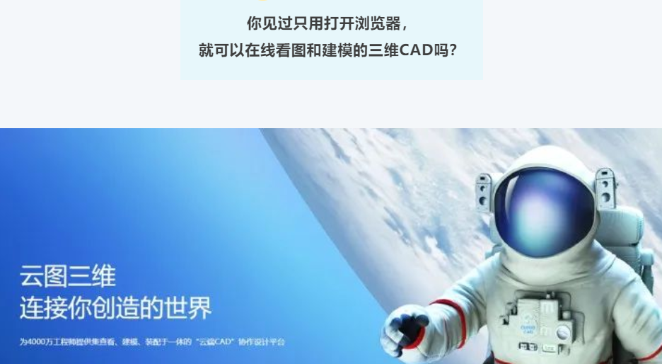 最近两年,敢创业的绝对都是勇者。正巧,国内就有这么一家头铁的公司,不仅在疫情严重的2020年1月成立,更是选择机械行业创业,然后还选择了被国外垄断了几十年的三维CAD行业,企图打破西门子、达索、PTC的垄断。【云图三维】就是他们制作的一款在线三维CAD的软件!www.yuntucad.com/?from=tg47