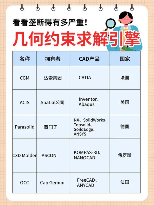 你知道国外三维CAD机械垄断有多严重吗?在CAD领域里,有一个技术叫做几何约束求解器,是CAD领域中最基础、最重要,也是最难的技术,一直掌握在国外的厂商手中。因此,国内想要做属于自己的三维CAD,只能去找国外公司去求着购买版权,国外还不卖给你!