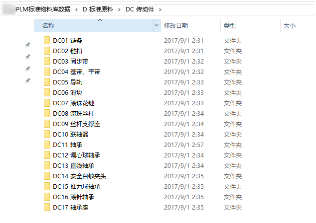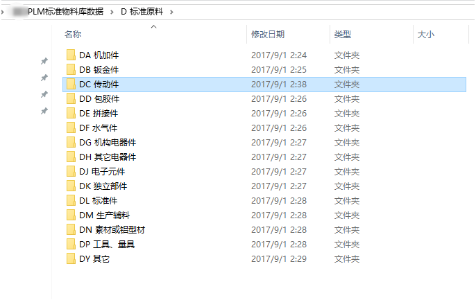 参考企业现有物料分类表(大类-中类-小类),在本地电脑建立物料分类文件夹,例如:广东A客户研发中心标准化小组按照品号(物料编码)D、E开头的标准件、通用件分类建立相应各级分类文件夹。