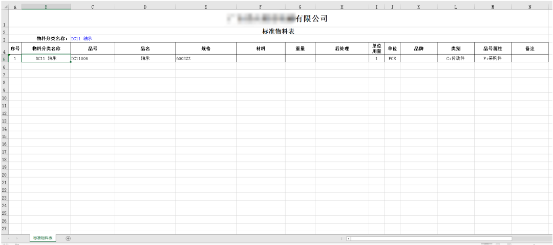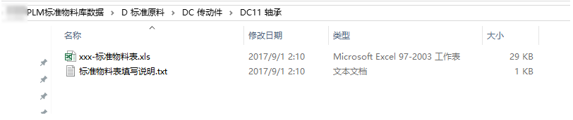 关于标准物料表文件的命名,可参考如下样式:DC11 轴承-标准物料表.xls