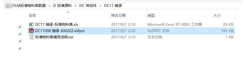 1)关于标准原料SolidWorks图纸文件的命名,可参考如下样式:DC11006 轴承 6002ZZ.sldprt