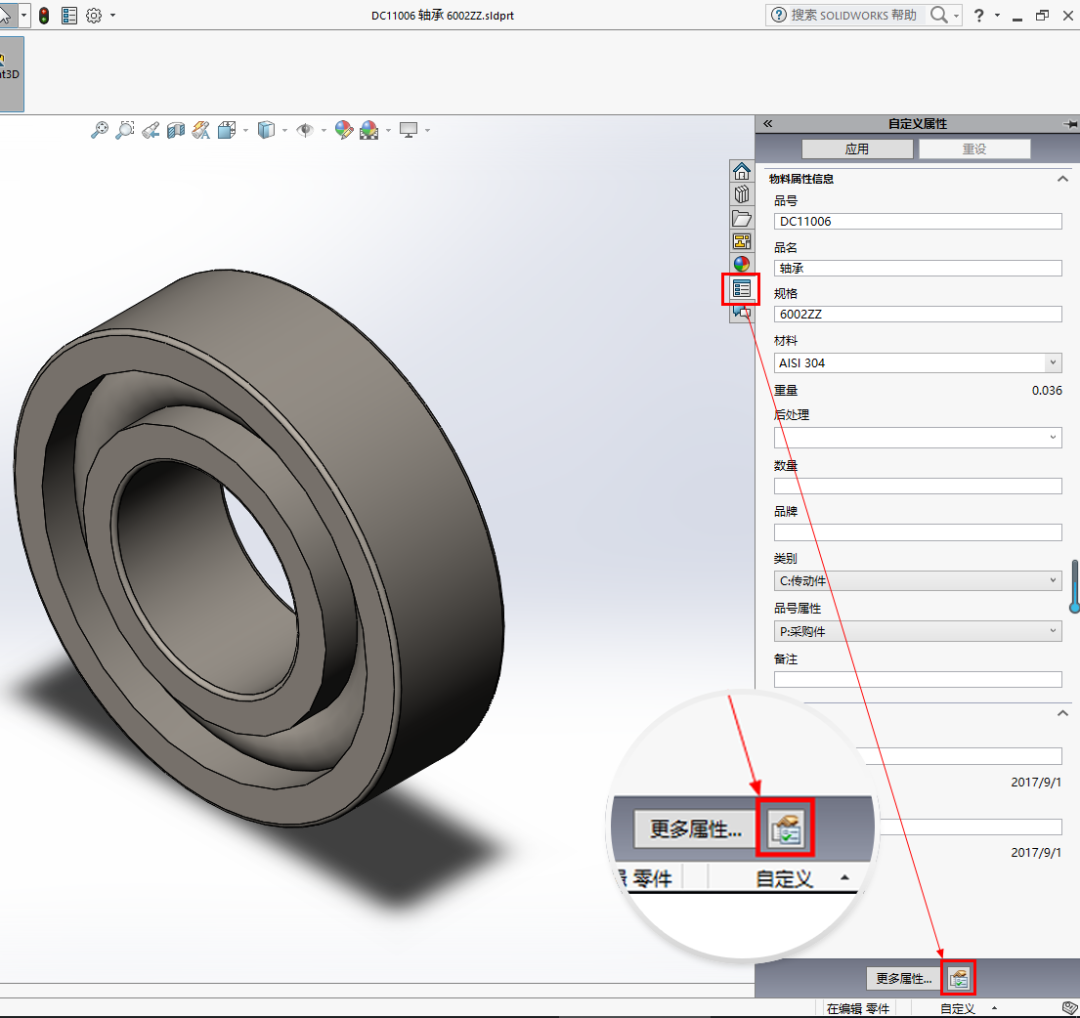 操作方法:通过调用SolidWorks软件界面右侧的自定义属性选项卡,先在下方选择对应物料大类的自定义属性选项卡,然后快速填写物料属性信息,之后点击上方的“应用”按钮,最后保存图纸。