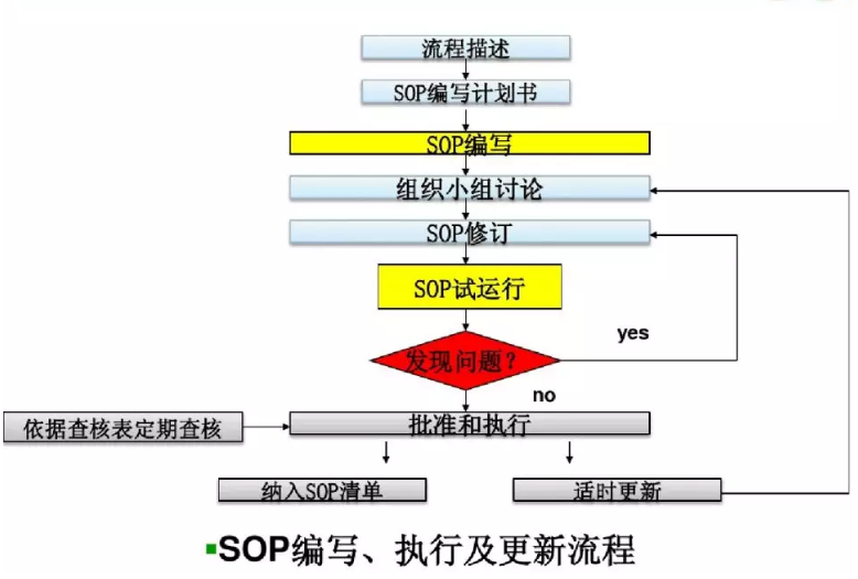 SOP是对一个过程的描述,不是一个结果的描述。同时,SOP不是制度,也不是表单,是流程下面某个程序中关控制点如何来规范的程序。