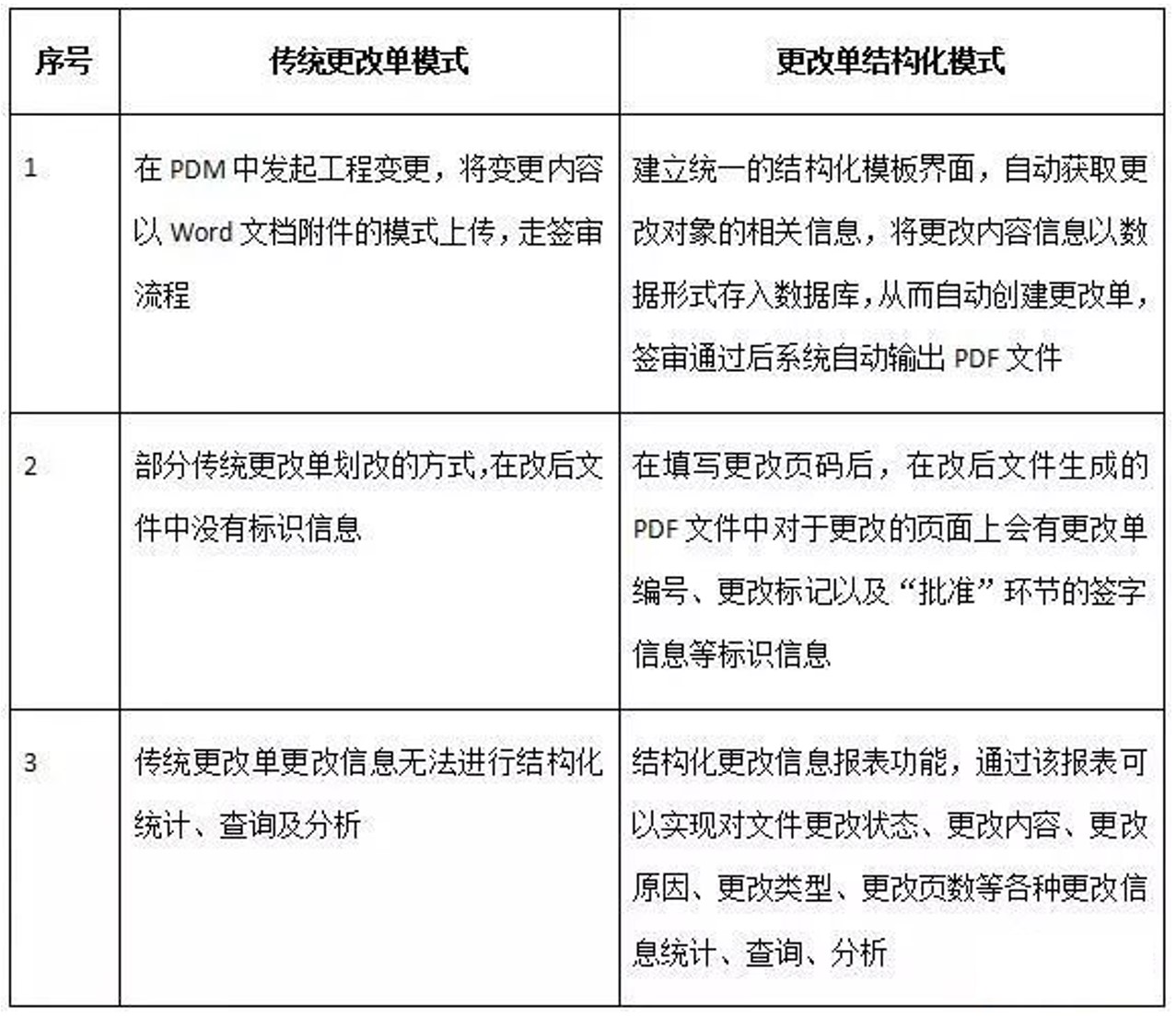 更改单结构化解决了传统更改单的三大问题,如表1所示。