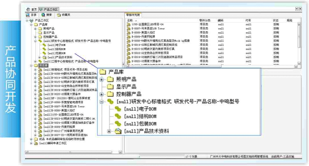 中大中鸣的每一款照明产品都在PLM中进行分类集中管理,并且在实施了系统后,一切产品研发都基于平台展开,在平台中保存的资料成为唯一合法的产品技术资料,形成了一个集中的产品设计资料库。