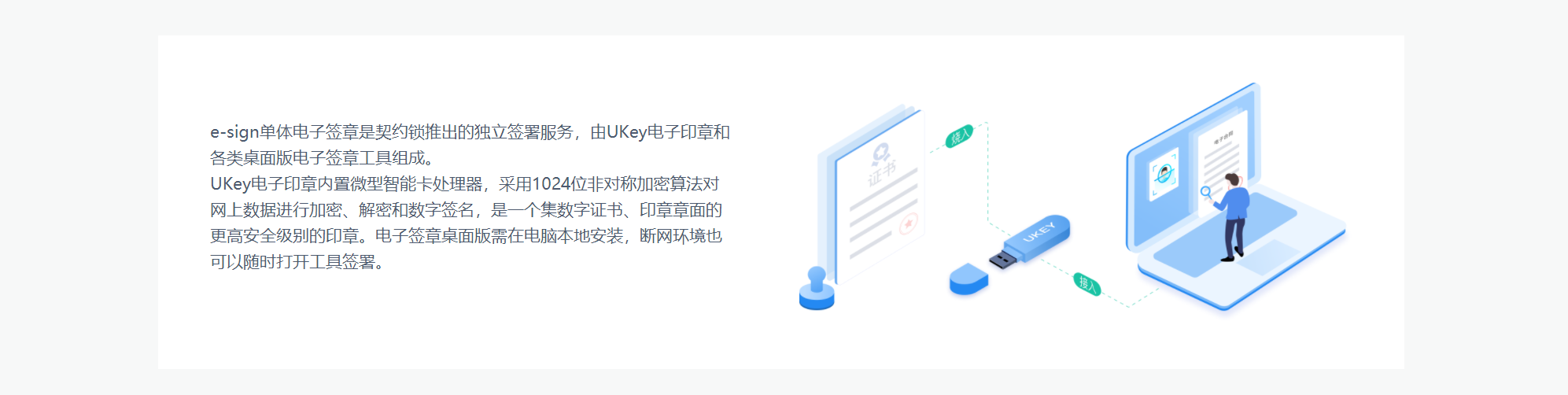 桌面版签章软件和UKey电子印章技术相结合,让您随时随地签署,不再受地域和网络环境限制