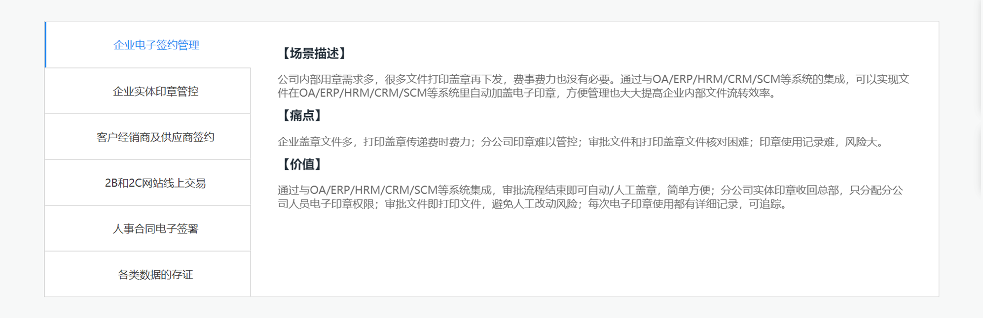 为组织提供可私有化部署的电子签章系统,通过接口与企业的OA、HRM、CRM、SCM等系统集成,让现有管理系统具有电子签能力